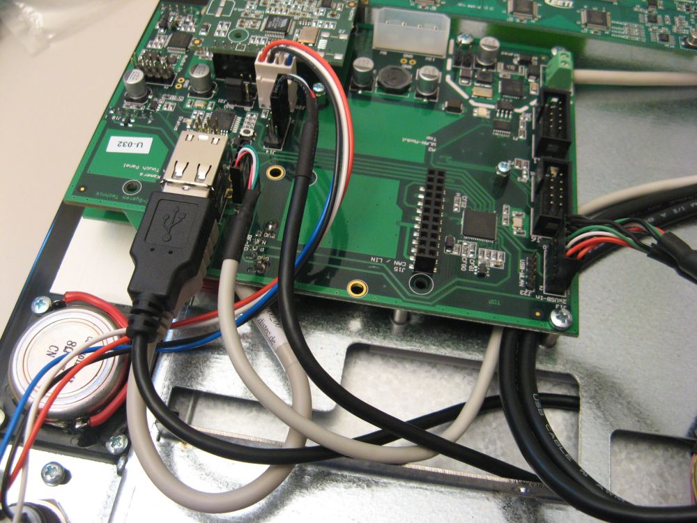 Vom Utilityboard zum Mainboard gibt es eine zweite direkt Verbindung. Hier das graue Kabel rechts neben der USB-A Buchse.