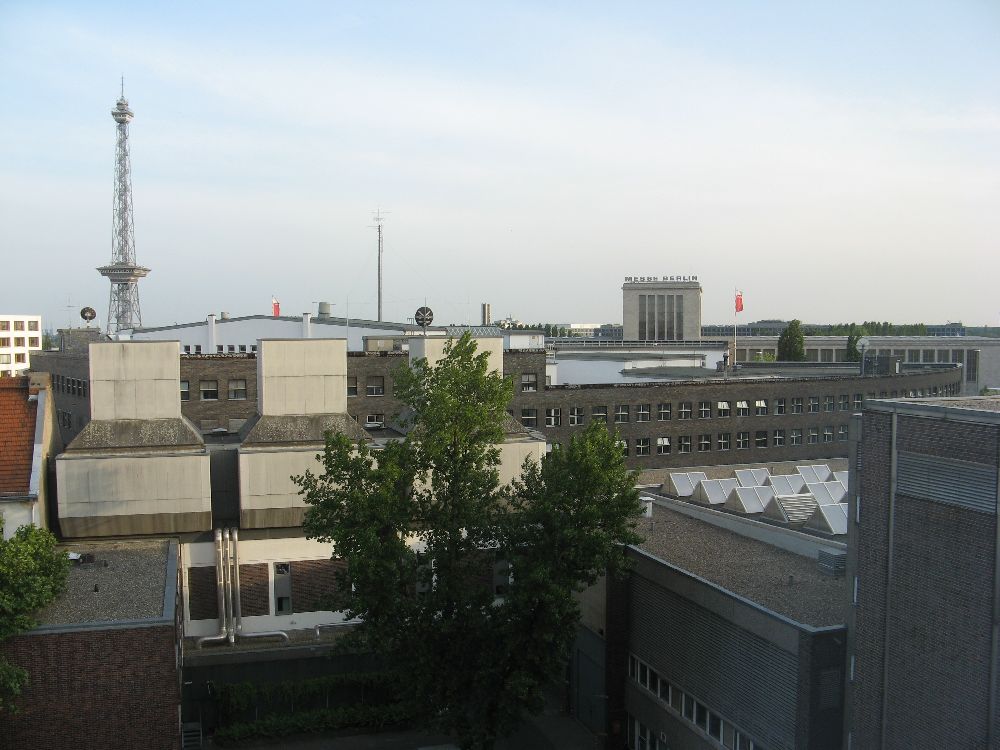Blick vom Hotelzimmer zum Funkturm und Messegel